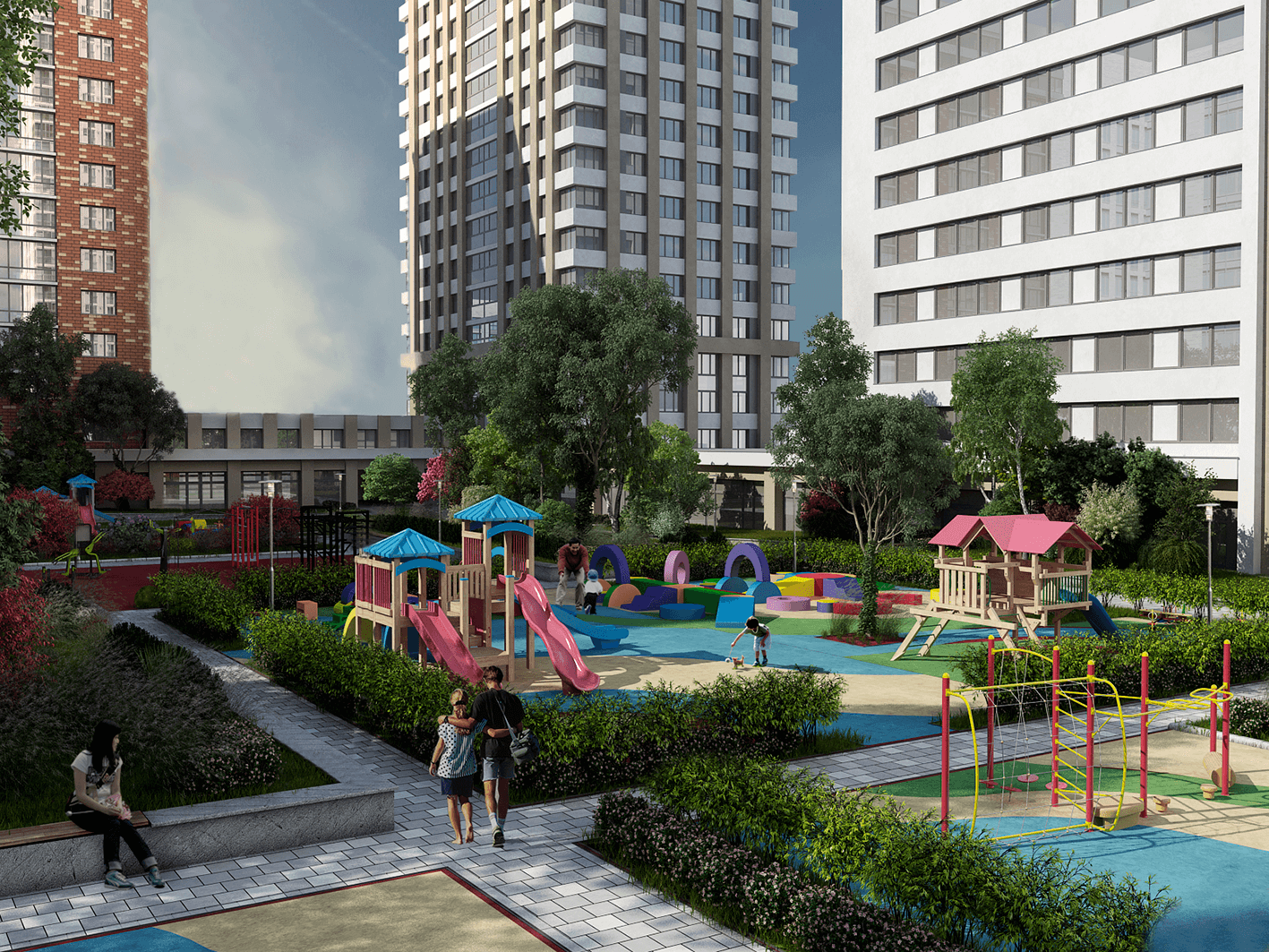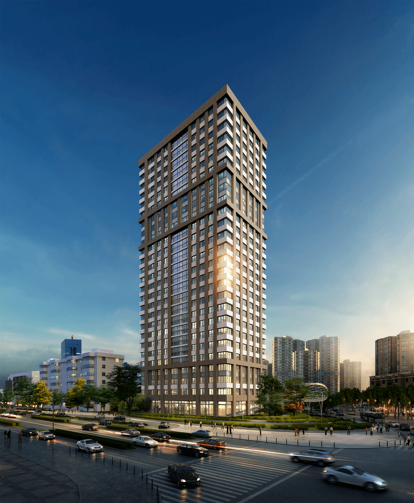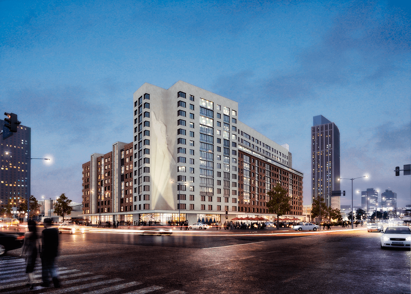 Здесь использованы приемы, привычные для конструктивизма, в частности, сочетания крупных объемов и скругленные завершения торцов и кровель. Фасады разработаны с использованием известной технологии печати на крупноформатном керамограните по авторским эскизам, а облицовка выполнена из керамогранита, кирпичных плиток, металлических кассет и стеклофибробетона.