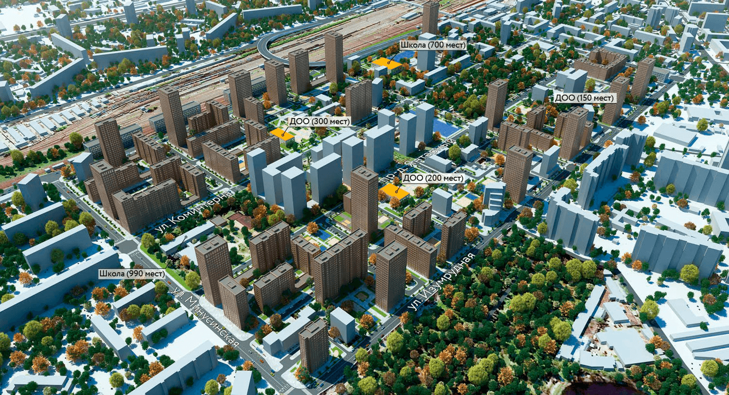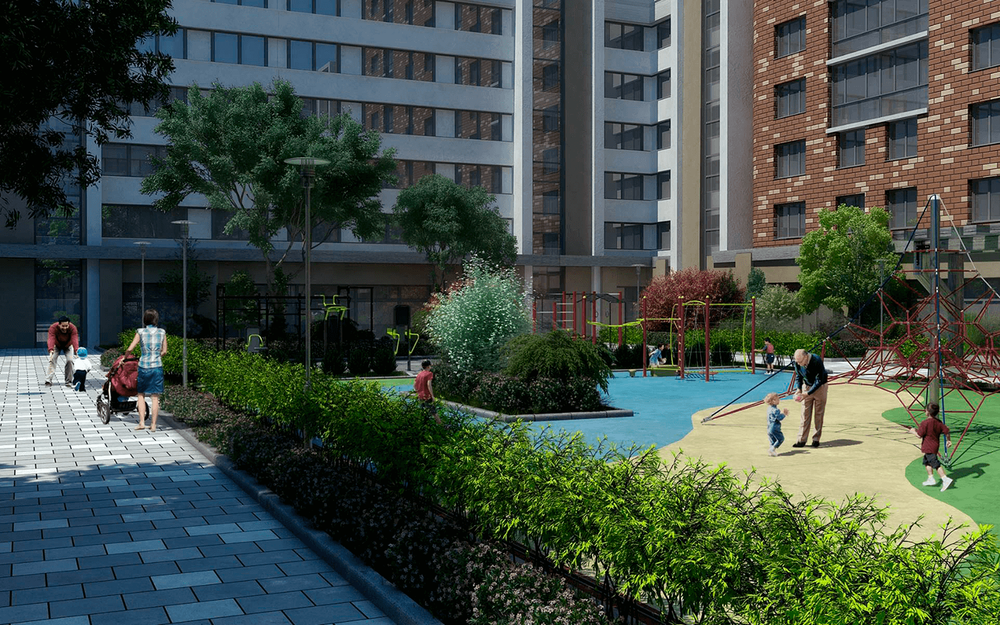 Система общественных пространств обеспечивает жителям комфортное передвижение от придомовой территории до остановок общественного транспорта, объектов социального и торгово-бытового назначения.