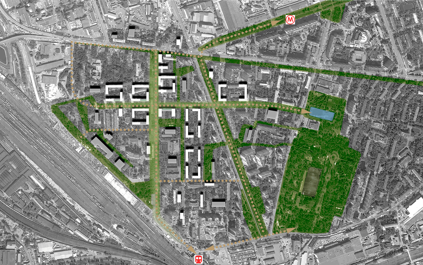 В границах подготовки проекта планировки территории определены участки для жилой, общественной и коммунальной застройки. На первых этажах жилых зданий предусматривается размещение помещений общественной функции – предприятий торговли и обслуживания населения.