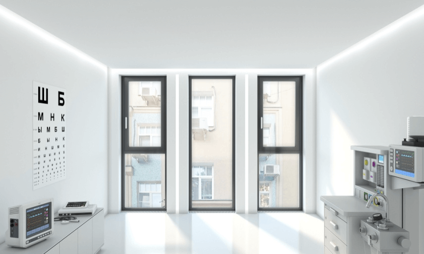 The streamlined, contemporary brick façade matches the restored historic Red Rose factory building. An elegant glass walkway links the building to the existing medical center.
